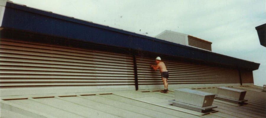 The banner image at the top of this page shows one of our current longest serving employees fitting louvres on a roof in the 1980’s. PPE requirements have changed a bit since then!