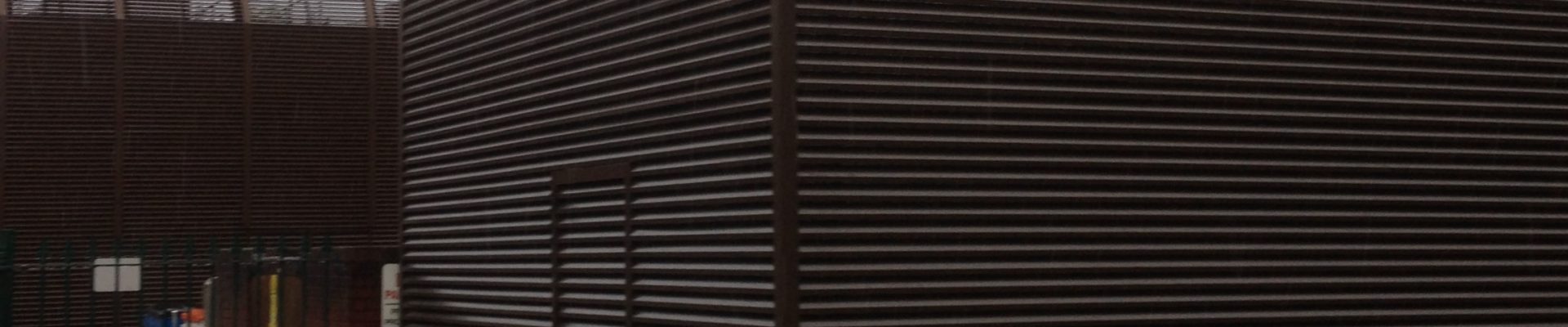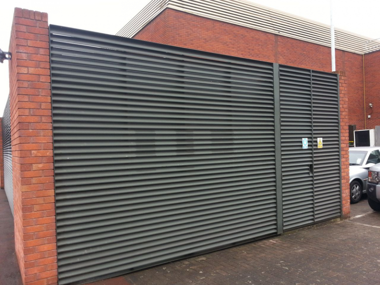 Two BL75C site assembled aluminium louvre screens to storage areas in Feltham.