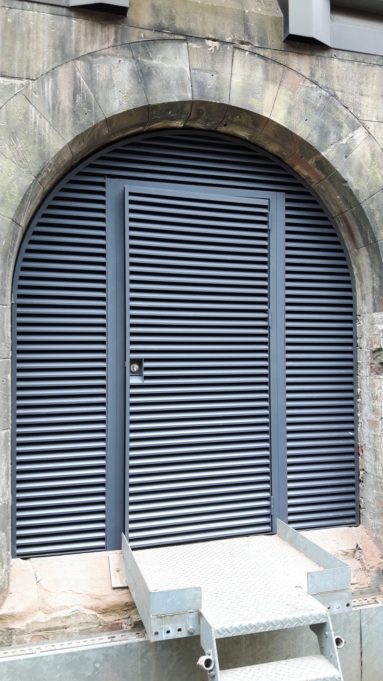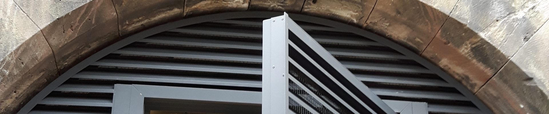 BL50/100 series louvres with arched heads in non-standard frames to accommodate existing opening structure.